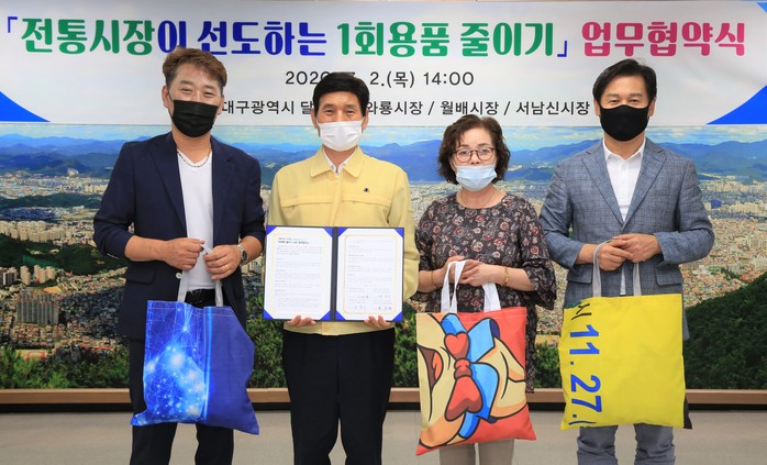 이태훈 달서구청장은 “달서구는 2005년부터 자원 재활용 촉진과 일회용품 사용을 줄이고자 폐현수막을 청소용 공공마대로 제작해 사용해 왔다”며 “이번 협약으로 전통시장에 폐현수막 장바구니를 배부하여 비닐사용을 줄이도록 노력하겠다”고 말했다.