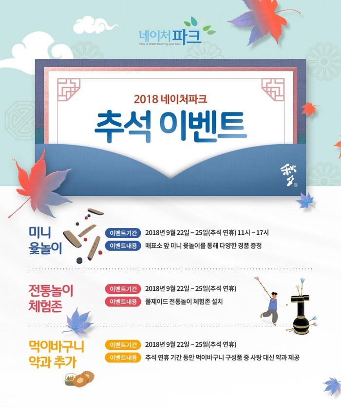 추석연휴에는 타지역방문객이나 한복착용 방문객 입장료를 10,000원으로 할인해 주는 “추석만(10,000) 같아라”(9.22~9.25) 이벤트를 진행하며, 전통놀이 체험존도 함께 운영된다.