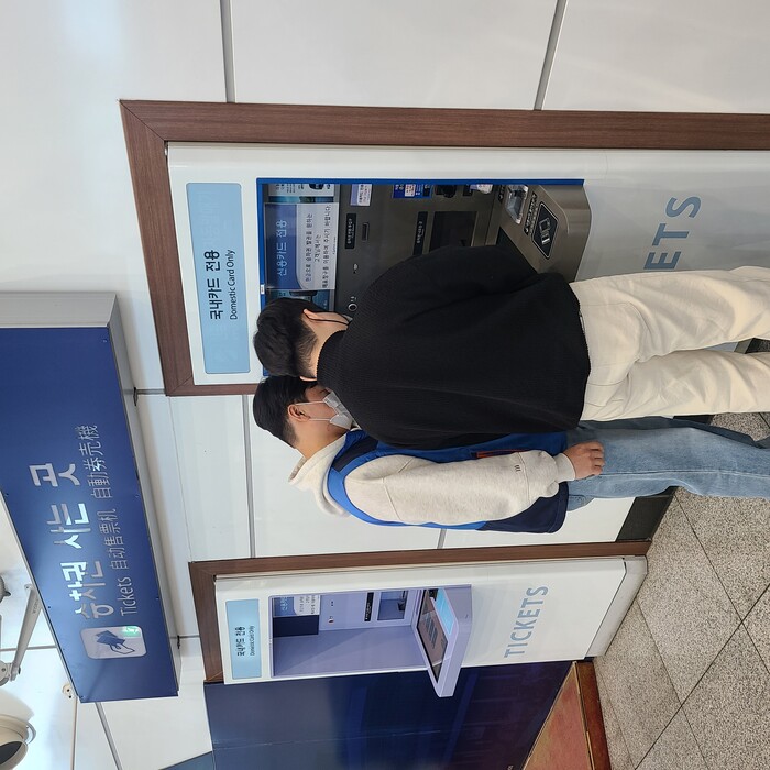 ▲한국철도는 근로장학생이고객에게 자동발매기 사용법을 알려주고 있다. 코레일 제공 |