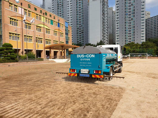 | ▲한 초등학교에 먼지억제제를 살포하는 모습.(경기도 제공) |