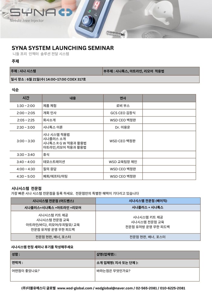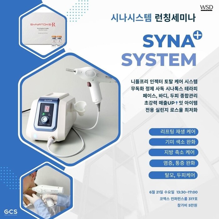 이번 행사는 글로벌 강소기업 (주)지씨에스 글로벌과 업무적 협약 관계를 체결하고 니들프리 인젝터 시나플러스와 시나톡스(페이스, 바디케어), 아트라인(바디케어), 리모어(두피케어) 솔루션을 활용한 멀티케어 프로그램을 선보였다.