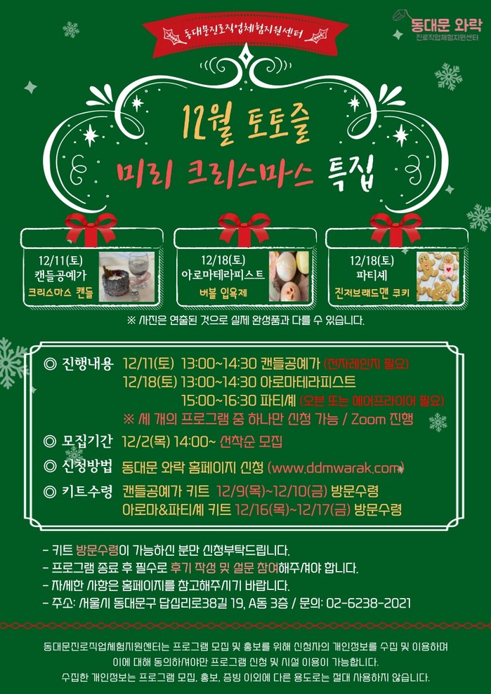 ▲동대문진로직업체험지원센터(이하 동대문 와락) 미리 크리스마스 특집 토요직업체험 프로그램 안내 포스터. |