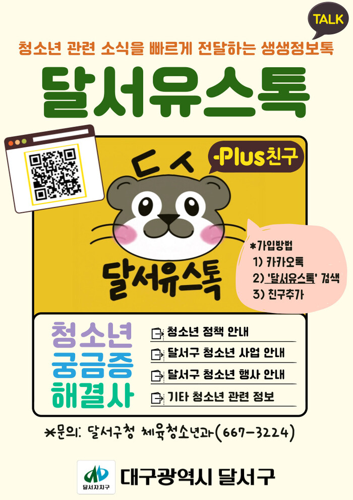 '달서유스톡'은 지역 청소년에게 다양한 정책을 알려주고, 청소년 대상의 다양한 행사와 정보를 전달한다. 또한 관내 청소년시설에서 운영하는 다양한 활동에 대한 정보를 전달해 청소년이 정보를 쉽게 접하고 프로그램에 참여할 수 있도록 할 계획이다.