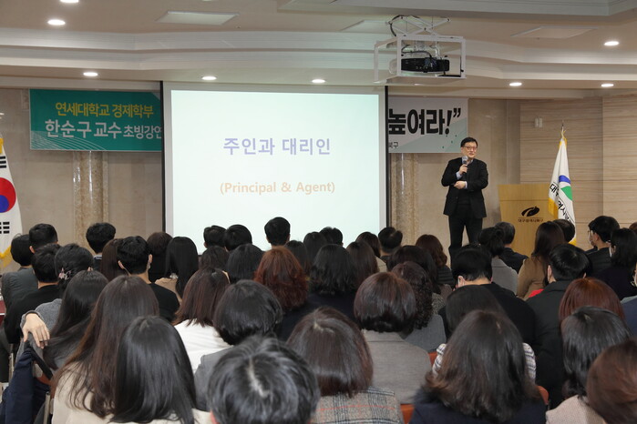 이번 강연에서 한순구 교수는 주인의식, 독점적 지위 등 어렵게 다가오는 경제학적 이론을 다양한 예시를 통해 설명하여 경제환경 변화에 따라 공무원이 어떻게 생각하고 일할 수 있을 지에 대한 이야기와 인공지능과 미래의 일자리, 플랫폼 경제 등 다가올 미래 경제상황에 대한 분석과 정책 방향에 대한 설명을 통해 다양한 정책 대응방안을 모색할 수 있는 기회를 제공했다.