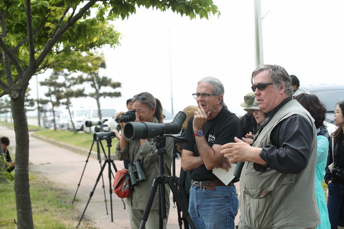| ▲11~12일 화성습지 일대를 탐조한 해외 인사들. 사진은 왼쪽부터 캐서린 렁, 랜돌프 헤스터, 나일 무어스. |