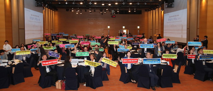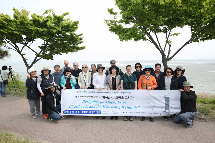| ▲화성습지 국제심포지엄 참가자들이 플랜카드 세리머니를 하고 있는 모습.(화성시 제공) |
