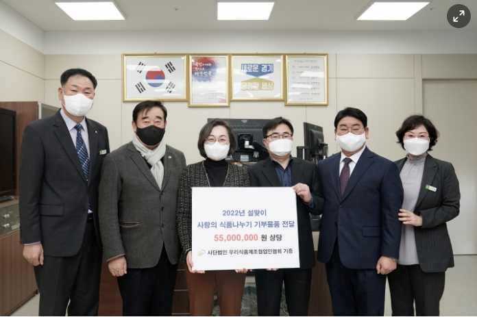 [로컬세계 김병민 기자]경기 성남지역 식품 관련 업체들의 모임인 ㈔우리식품제조협업인협회가 설 명절을 앞둔 1월 24일 5500만원 상당의 먹거리를 사회복지시설에 기부했다.