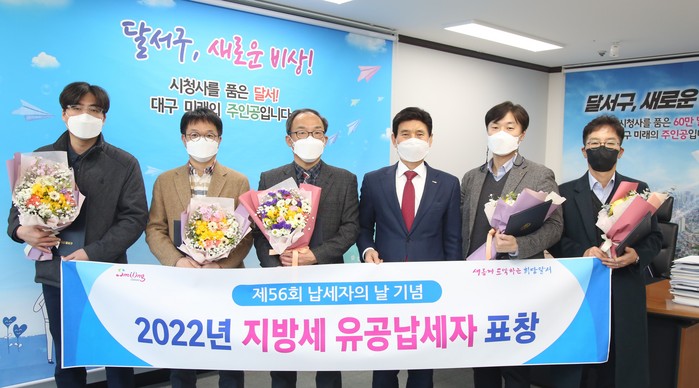 [로컬세계 박세환 기자]대구 달서구(구청장 이태훈)는 지난해 지방세 성실납세자 55명을 선정하고, 특히 구 재정 확충에 크게 기여한 유공납세자 5명에 대해 3일 제56회 납세자의 날(3. 3.)을 기념해 표창을 수여했다고 8일 밝혔다.