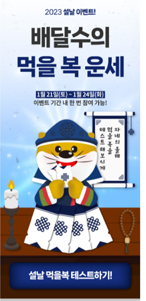 대구형 배달앱 ‘대구로’는 다가오는 설을 맞이해, 오는 20~24일까지 ‘배달수의 먹을 福’ 설 이벤트를 진행한다.
