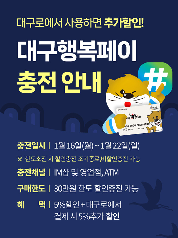 전통시장 장보기, 택시 호출 등 서비스를 확장한 ‘대구로’는 신규 회원가입 쿠폰 제공, 대구행복페이 5% 추가 할인, 마일리지 적립 등의 다양한 혜택을 올해에도 계속 제공할 예정이다.
