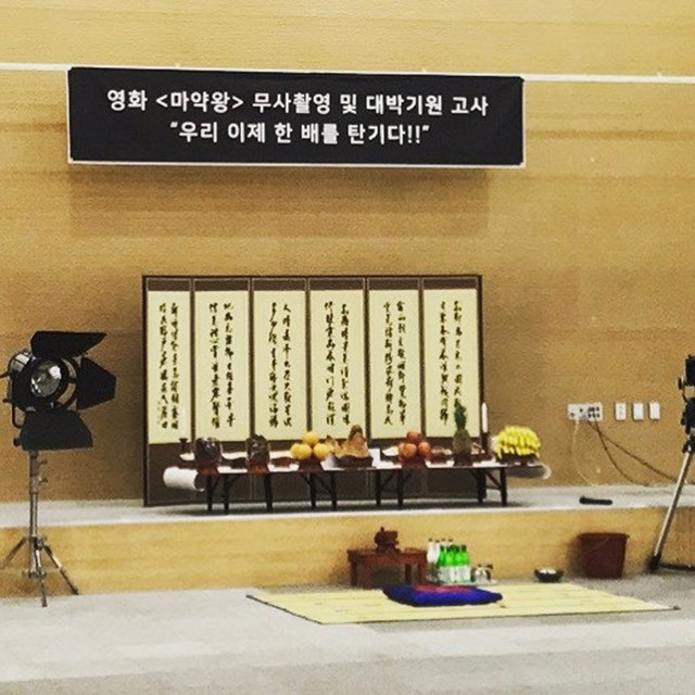 지난 4월 19일 한 SNS에 "2018년 최대 기대작 #마약왕 고사. #흥행의신이 함께하길"이라는 글과 함께 영화 '마약왕' 고사 현장 사진이 올라왔다.