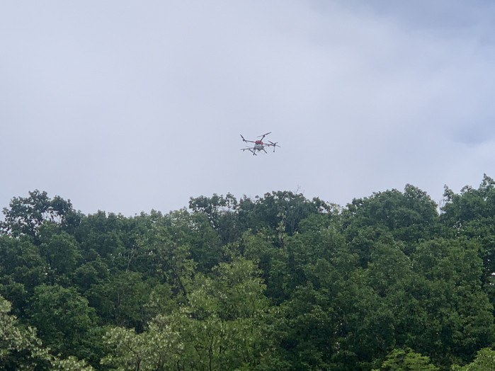 | ▲성남시가 드론을 띄워 산림 병충해 방제 중이다. 성남시 제공 |