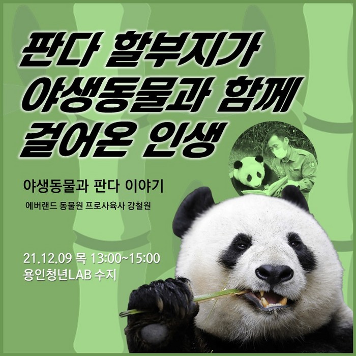 [로컬세계 김병민 기자]경기 용인시는 오는 9일 ‘용인청년LAB 수지’에서 판다 할아버지로 알려진 에버랜드 강철원 사육사의 특별 강연을 준비했다.