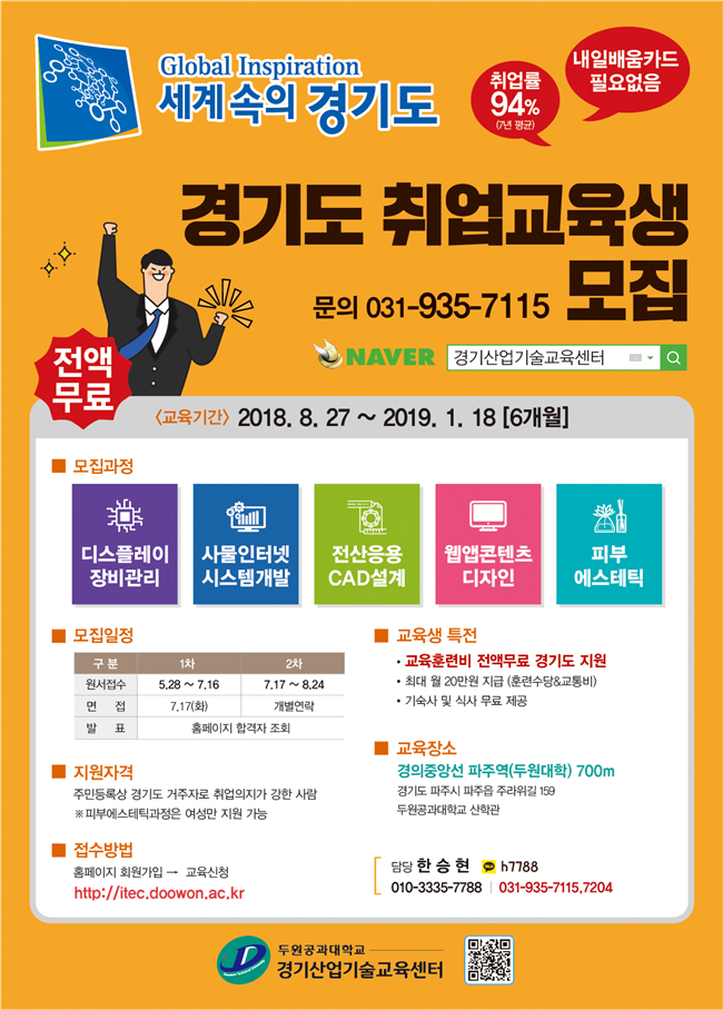 자세한 사항은 경기산업기술교육센터 홈페이지(http://itec.doowon.ac.kr)를 참고하거나 경기산업기술교육센터(031-935-7115)로 문의하면 된다.