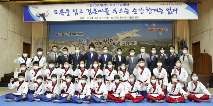 [로컬세계 박세환 기자]대구 달서구는 지난 24일 태권도시범단을 창단해 구청 대강당에서 발대식을 개최하고 본격적인 운영에 들어간다고 26일 밝혔다.