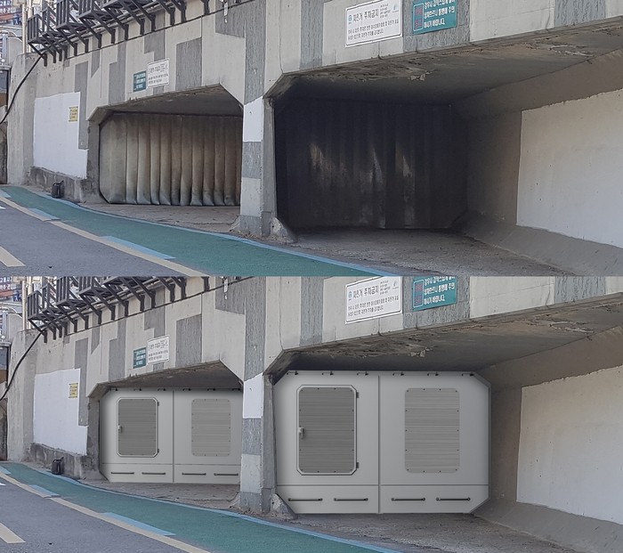 ▲하수 악취 차단 게이트 설치 전(좌), 설치 후 예정(우) 사진 |