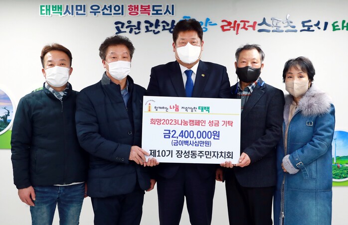 [로컬세계=박상진 기자]강원 태백시 장성동 주민자치회(회장 신승하)는 지난 20일 태백 시청을 방문해 이웃 돕기 성금 240만원을 지정 기탁했다.