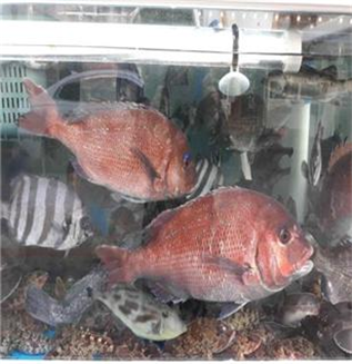 ▲부산시내 모 업소 내 수족관에 보관 중인 국내산이라고 적힌 일본산 참돔. 부산시 제공 |