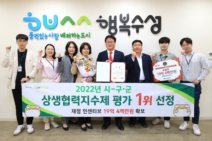수성구는 2022년 상생협력지수 측정 8개 사업 중 ▲지역건설산업 활성화 ▲교통사고 줄이기 ▲시민주도 관광.문화도시 조성 등 3개 사업에서 최우수등급을 받았다.