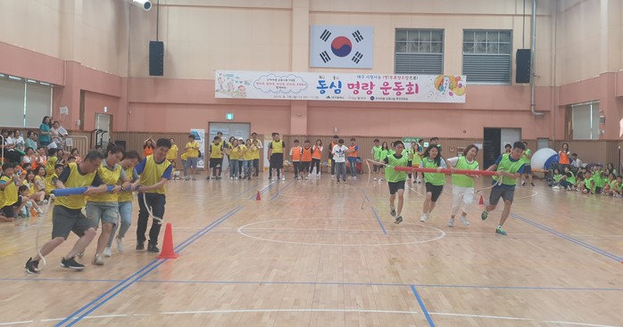 이번 동심 명랑운동회는 몸풀기 체조와 함께 우리마을팀과 교육나눔팀으로 나눠 열띤 응원을 시작으로 경쟁이 아니라 모두 한마음으로 큰공굴리기, 파도를 넘어, 색판뒤집기, 단체줄넘기 등 다양한 프로그램으로 진행됐다.