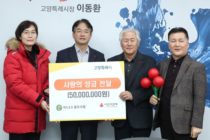 [로컬세계 = 이영원 기자]경기 고양특례시(시장 이동환)는 지난 12일 ㈜1.2.3 골프클럽에서 연말을 맞아 성금 5000만 원을 고양시 저소득층을 위해 기부했다고 14일 밝혔다.