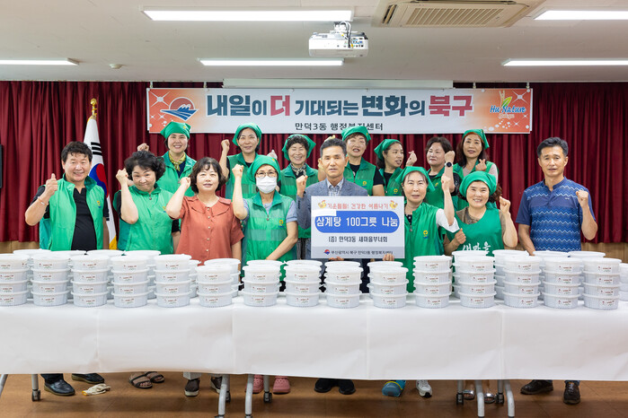 [로컬세계 부산=맹화찬 기자]부산 북구 만덕3동 행정복지센터는 지난 11일 만덕3동 새마을 부녀회에서 초복맞이 삼계탕 나눔 행사를 진행했다고 16일 밝혔다.
