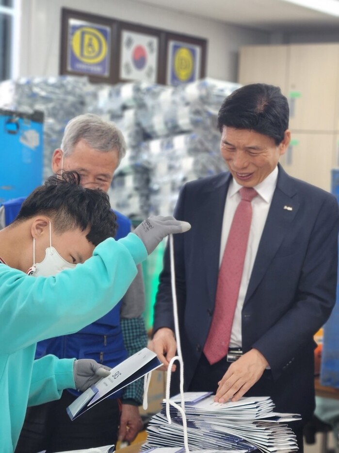 특히 중증의 장애인도 일을 통해 자립할 수 있도록 보호고용과 근로 안전망을 갖춘 장애인 취업의 전진기지 역할을 담당하고 있다. 이날 이태훈 구청장은 근로 장애인들과 함께 작업공정 라인에 함께 투입돼 청년들과 협업하며 소통하는 시간을 가졌다.