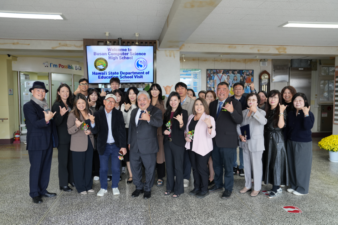 부산 동구 부산컴퓨터과학고등학교는 지난달 31일 키스 하야시(Keith Hayashi) 교육감과 엘리자베스 히가시(Elizabeth Higashi) 부교육감을 비롯한 하와이 교육청 관계자 6명이 학교를 방문했다고 7일 밝혔다.