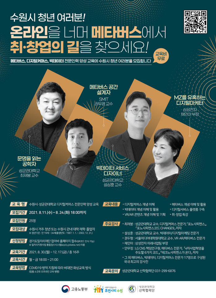 성균관대 교수와 관련 분야 현업 전문가로 강사로 나선다. 사업은 성균관대 산학협력단이 수행한다. 교육은 8월부터 12월까지 이뤄진다.