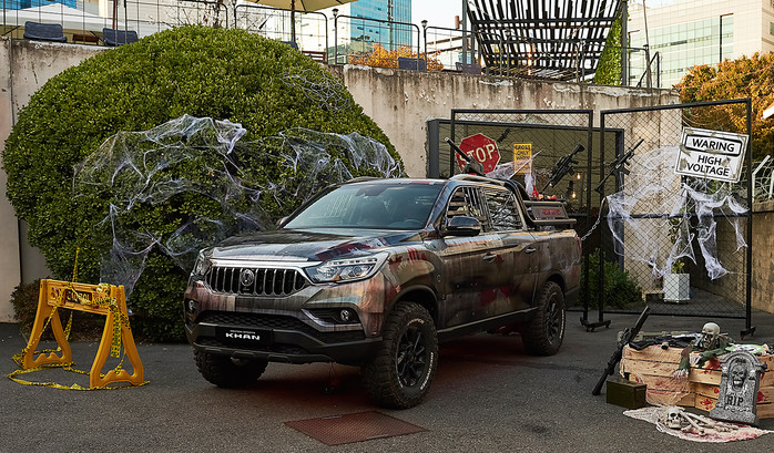 ▲서울 성수동 어반소스 현장에 전시된 렉스턴 스포츠 칸 좀비카.(쌍용자동차 제공) |