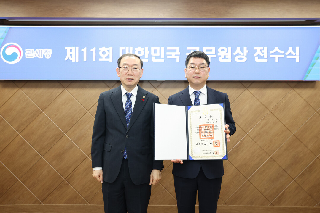 관세청은 박용환 주무관(근정포장)과 이창호 주무관(대통령 표창)이 ‘제11회 대한민국 공무원상’ 수상자로 선정됐다고 27일 밝혔다.