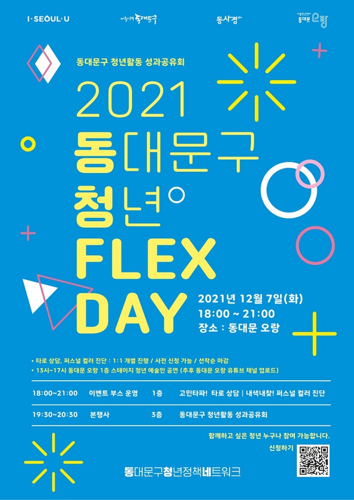 [로컬세계 임종환 기자]서울 동대문구(구청장 유덕열)가 오는 7일 서울청년센터 동대문오랑에서 청년들을 위한 ‘플렉스 데이(Flex day)’ 행사를 개최한다.