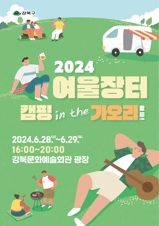 이번 행사는 강북문화예술회관 광장에서 28~29일 양일간 오후 4시부터 8시까지 진행한다. 행사 주제는 도심 속 캠핑으로, 축제가 진행되는 강북구 수유동의 옛 지명중 하나인 ‘가오리’와 ‘캠핑’을 따 ‘캠핑 in the 가오리’라고 이름을 붙였다. 구는 행사 콘셉트에 맞춰 캠핑텐트, 파라솔세트, 인조잔디, 차양막 등으로 공간을 꾸며 온 가족이 캠핑장에 온 듯한 느낌을 줄 계획이다.