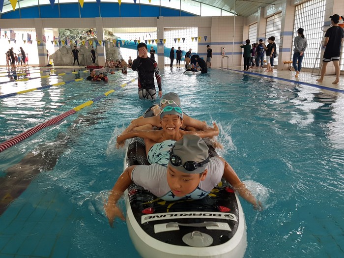 아이들은 강원대학교 관광레저스포츠센터의 수상안전교육 여객선 침몰을 가정해 강하식 비상탈출 훈련 및 패들보드 탑승, 이함 훈련 및 구조영법, 저체온증 예방 및 인간사슬을 통해 수상생존법교육과 인명구조법교육을 배웠다.