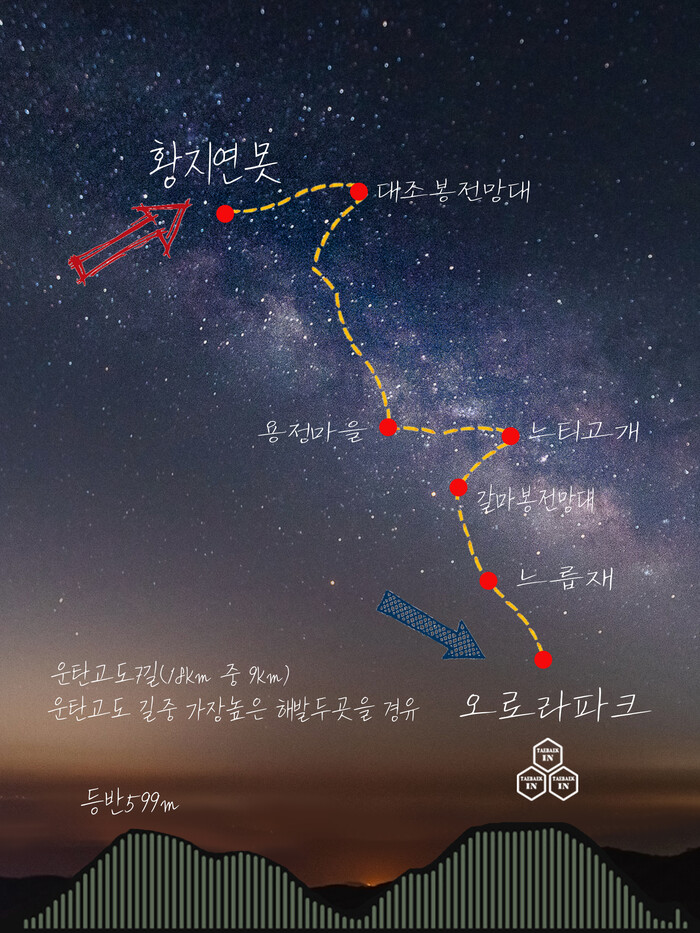 이번 행사는 ‘숲, 간이역, 별, 은하수’를 테마로, 황지연못에서 출발하여 대조봉전망대-느티고개-오로라파크(9㎞)로 이어진 운탄고도 7길을 따라 걷고, 오로라파크에 도착 후 백패킹 및 버스킹 공연, 별 사진 찍기 등의 프로그램을 즐기는 것으로 예정되어 있다.