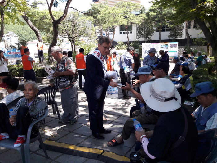 이날 캠페인에는 황지연못 및 시내를 오가는 시민들을 대상으로 무더위 인명피해 예방과 안전수칙 및 여름철 건강관리 요령, 국민행동요령 리플릿 배부와 함께 무더운 여름 쿨 ‘cool ’ 한 얼음생수, 쿨토시를 나눠줬다.