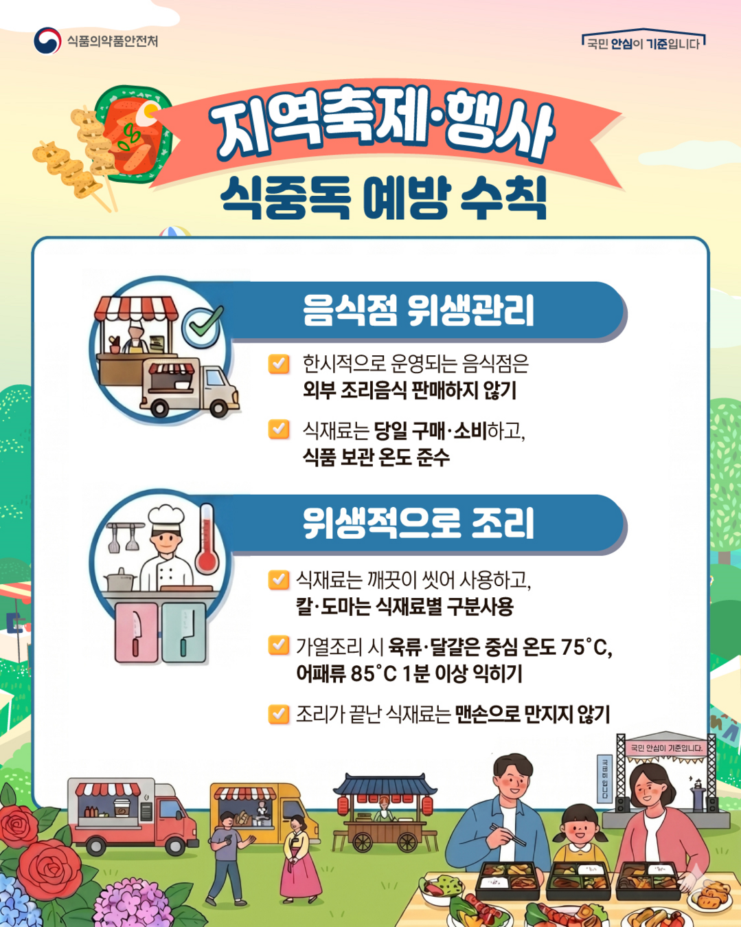 식약처는 “관계기관과 협력해 축제 현장의 위생관리를 강화하고, 국민이 안심하고 행사에 참여할 수 있도록 관리체계를 지속 개선해 나가겠다”고 밝혔다.