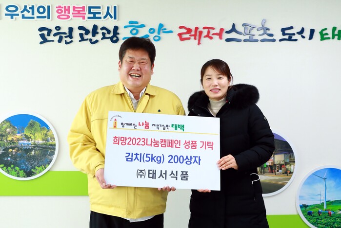후원품은 성재기 대표를 대신해 유재봉 사장이 태백시청을 방문해 전달했다.