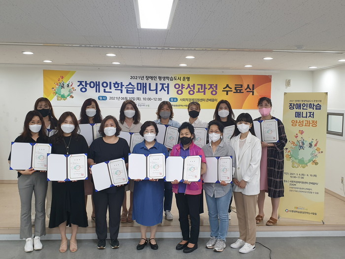 ‘장애인 학습매니저 양성과정’은 장애인들이 평생학습 프로그램에 참여할 때 필수적인 도움을 주는 학습매니저 28명을 양성했다. 장애 유형별 특성과 소통법을 배우고 장애인 인권과 평생학습에 대해 지식을 갖춘 학습매니저들은 장애인 평생학습 프로그램에 투입돼 장애인들의 학습을 도왔다. 수어나 동화구연 등 자신이 배우고 익힌 능력을 활용해 보조역할과 관찰일지 작성 등 평생학습매니저로서 활약하며 평생학습의 선순환을 그렸다.