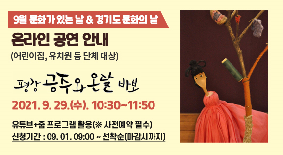 공연 영상은 9월 29일 오전 10시 30분 어린이 연극 전문 예술단체인 극단 ‘이야기꾼의 책공연’ 유튜브 채널에서 볼 수 있다.