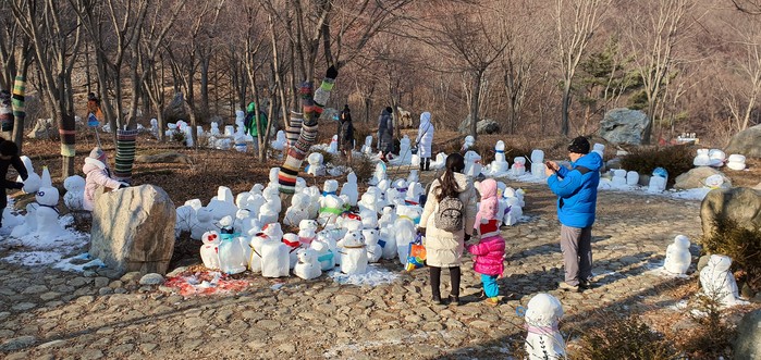 어린이를 동반한 가족 단위 방문객들이 손쉽게 만들 수 있어 개성 만점의 눈사람들이 야생화 공원 곳곳을 가득 채우고 있다.