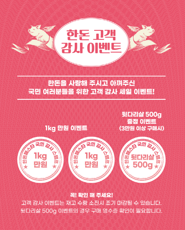 한돈페스타 행사 맞아 한돈 삼겹살(1kg), 1만원 판매하는 ‘국민 감사 이벤트’ 진행