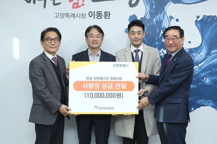 [로컬세계 = 이영원 기자]경기 고양특례시는 지난 12일 원당·탄현베스트 장례식장이 시민행복 나눔을 위한 사랑의 성금 1000만원을 기부했다고 14일 발혔다.