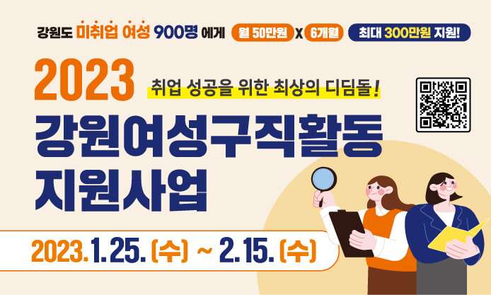 [로컬세계=박상진 기자]강원 태백시는 여성의 경제활동 촉진 및 경력단절 예방을 위해 '2023년 강원 여성구직활동 지원사업' 참여자를 다음달 15일까지 모집한다고 26일 밝혔다.