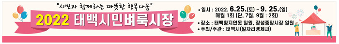[로컬세계=박상진 기자]강원 태백시는 오는 9일 장성중앙시장 일원에서 자원 재활용 문화 형성과 나눔 행복· 교환의 재미를 느낄 수 있는 ‘행복나눔 시민 참여형 벼룩시장’을 개최한다고 6일 밝혔다.