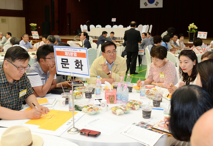 앞으로의 4년 임기동안 추진하게 될 구체적인 공약실천계획을 주민들과 함께 설계하는 이번 자리는 구민 126명이 7개 원탁에 주제별로 나누어 앉아 구 현안 사항을 토의하는 시간으로 진행된다.