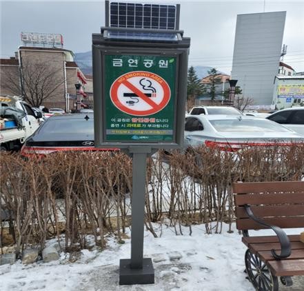 이번에 설치한 곳은 금연구역과 흡연 민원 다발 지역 중 11곳으로 태양광 LED로 표지판을 제작해 야간에도 금연구역 식별이 용이 하도록 했다.