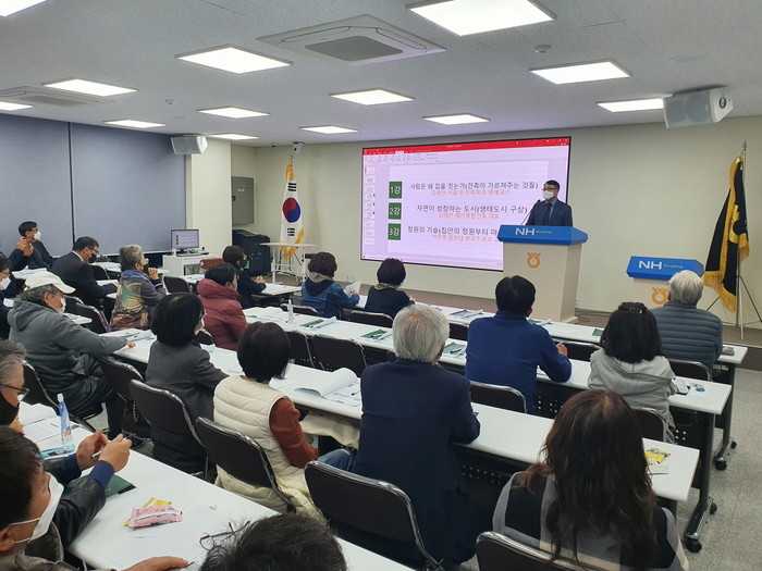 녹색건축교실은 ▲제1강 서울대 건축과 김광현 명예교수의 ‘사람은 왜 집을 짓는가(건축이 우리에게 가르쳐주는 것들)’을 시작으로 ▲제2강 해안건축 김태만 건축사의 ‘자연이 성장하는 도시(생태도시에 관한 구상)’ ▲제3강 중부대 박은영 교수의 ‘정원의 기술(집안의 정원부터 마을정원까지) ▲제4강 녹색건축물 현장학습 순서로 진행됐다.