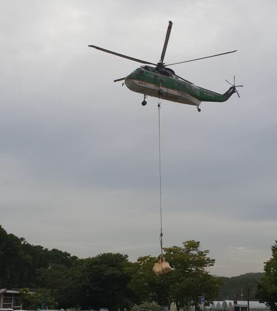 특히 망일봉 정상과 조야고개에 새로 설치할 정자는 인력으로 자재운반이 어려움에 따라 작업의 효율성을 높이기 위해 오는29일 12시부터 옻골공원 잔디광장에서 헬기로 자재를 직접 운반하며, 자재를 운반할 헬기는 벨S-61N 기종으로 최대 5000㎏의 물건을 들어 옮길 수 있다.