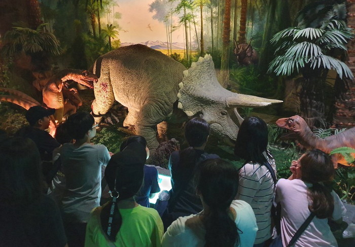 ▲세계 3대 공룡발자국 화석지인 경상남도 고성에 방문한 영등포구 어린이 문화체험단 단원들이 지난 8월 1일 공룡박물관을 둘러보고 있다.(영등포구 제공) |